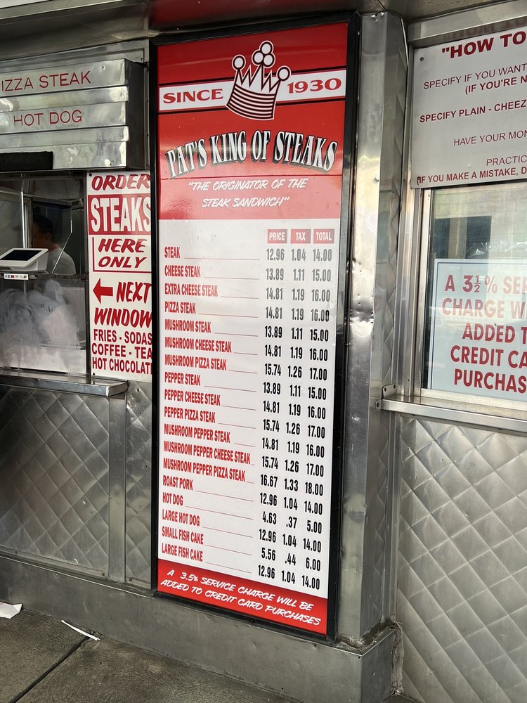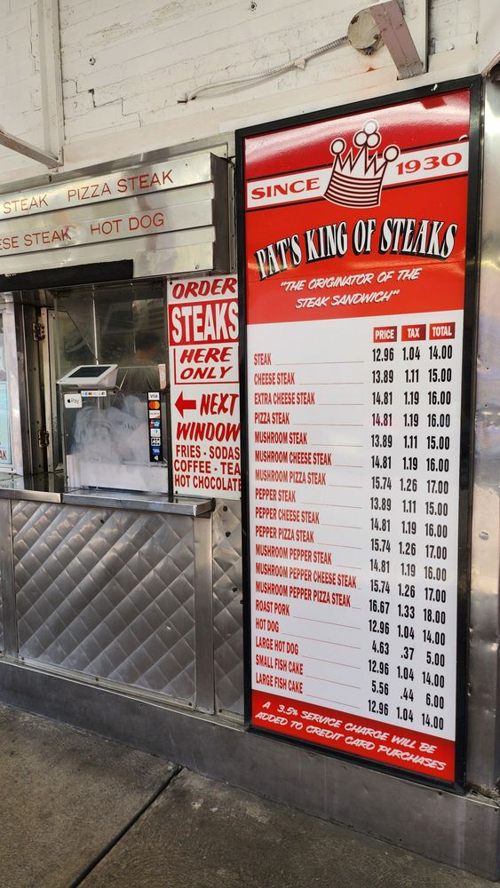 Welcome to Pat's King of Steaks, a renowned cheesesteak establishment located in Philadelphia, PA. Known for its mouthwatering cheesesteak options, including classics like Steak, Pepper Steak, and Mushroom Steak, Pat's offers a diverse menu that caters to all preferences. Customers rave about the original flavors and the hearty portions delivered promptly. The sides, such as Cheese Fries and Chicken Tenders & Fries, complement the main course perfectly. The atmosphere is casual and welcoming, making it a perfect spot for a quick bite or a late-night indulgence. With a diverse selection of payment methods, outdoor seating, and efficient service, Pat's King of Steaks guarantees a delightful dining experience for all. Don't miss out on their signature Threesome Combo for a satisfying meal that will leave you craving more. Visit Pat's King of Steaks for an authentic Philadelphia dining experience.